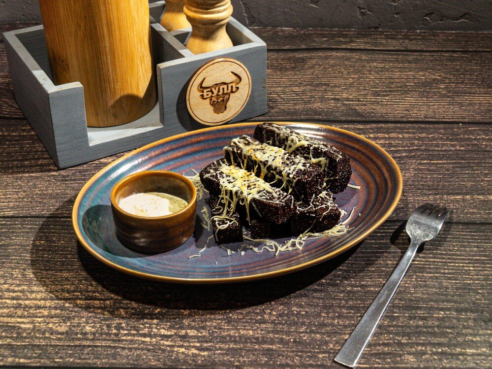 Бородинский хлеб, чеснок, сыр пармезан, соус тар-тар