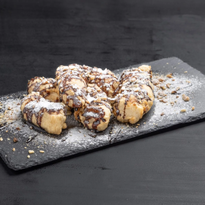 Сладкий ролл с тропическими фруктами и нежным сыром, заправленными фруктовым соусом и завернутыми в спринг тесто.