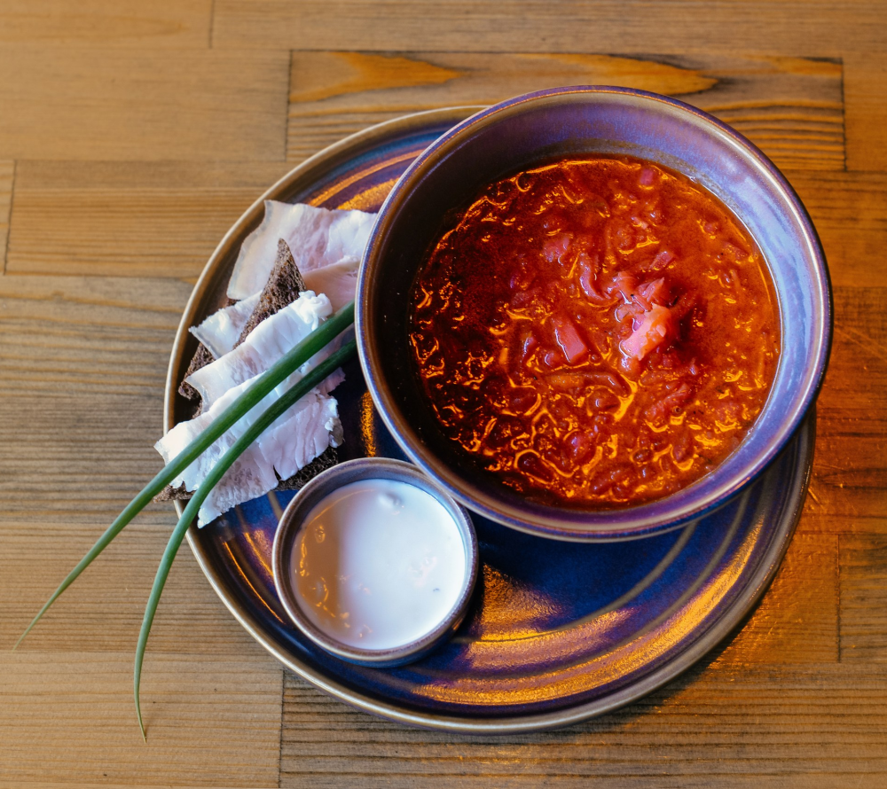 Суп, который не нуждается в представлении. Подаем со сметаной, Бородинским хлебом и салом.